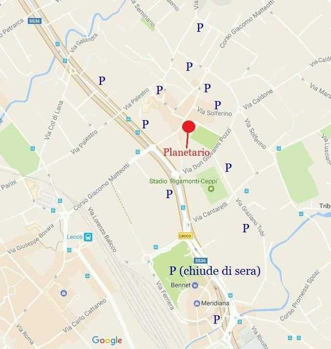 Vi indichiamo gli indirizzi e la posizione sulla cartina dei parcheggi in prossimità del Planetario.